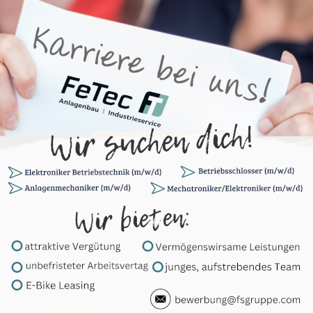 Mit Zuverlässigkeit, Fachkompetenz und langjähriger Expertise bieten wir unseren Kunden im Bereich des Anlagenbaus und der Industrieleistungen maßgeschneiderte Leistungen aus einer Hand an. Wir begleiten Sie nicht nur bei Neuanlagen sondern selbstverständlich auch bei effizienten Nachrüstungen, kundenspezifischen Erweiterungen diversester Komplexitätsgrade, uvm. Setzen Sie auf die Erfahrung der FETEC GmbH. Unser Service macht den Unterschied!